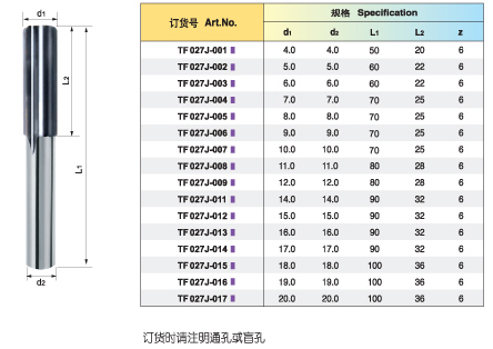 整体硬质合金直柄直槽铰刀