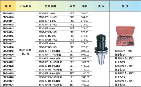 BT30-ER型铣刀柄